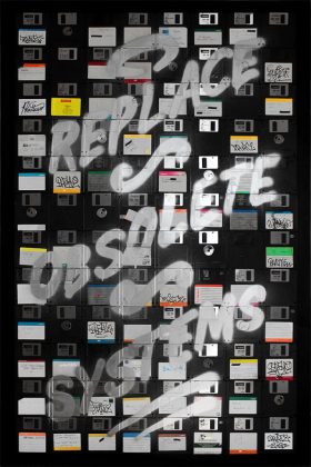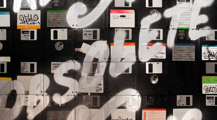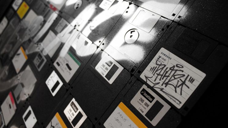 Spray Paint on Floppies – Mounted on Wood